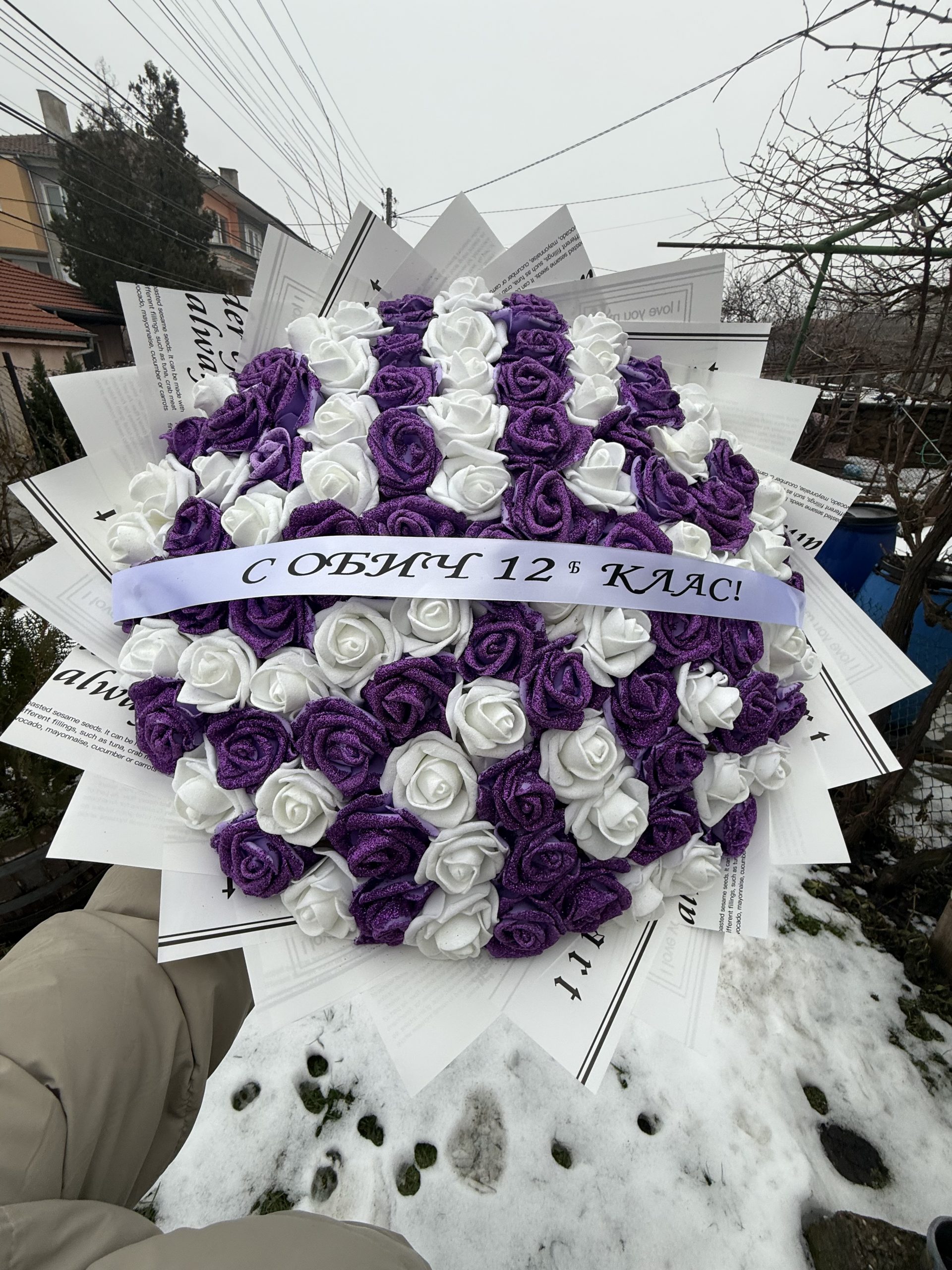 Предлага се в различни цветови комбинации – бяло с лилаво, бяло с розово , бяло с червено, бяло с синьо или според повода и вкуса на получателя. Всеки букет е красиво опакован и готов за поднасяне. Предоставяме бърза и надеждна доставка до адрес, офис или лично получаване. Ако търсите начин да впечатлите и да оставите траен спомен, този букет от 101 фоамени рози е точното решение.