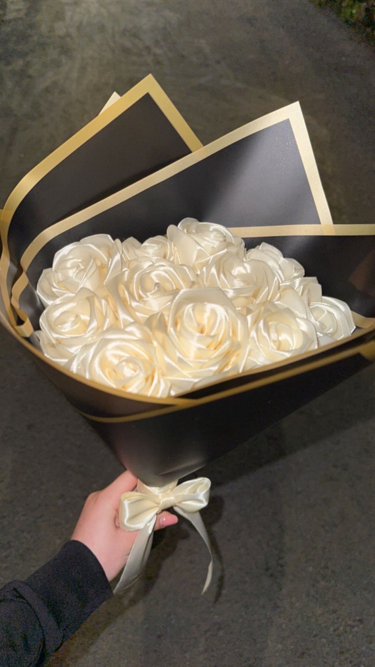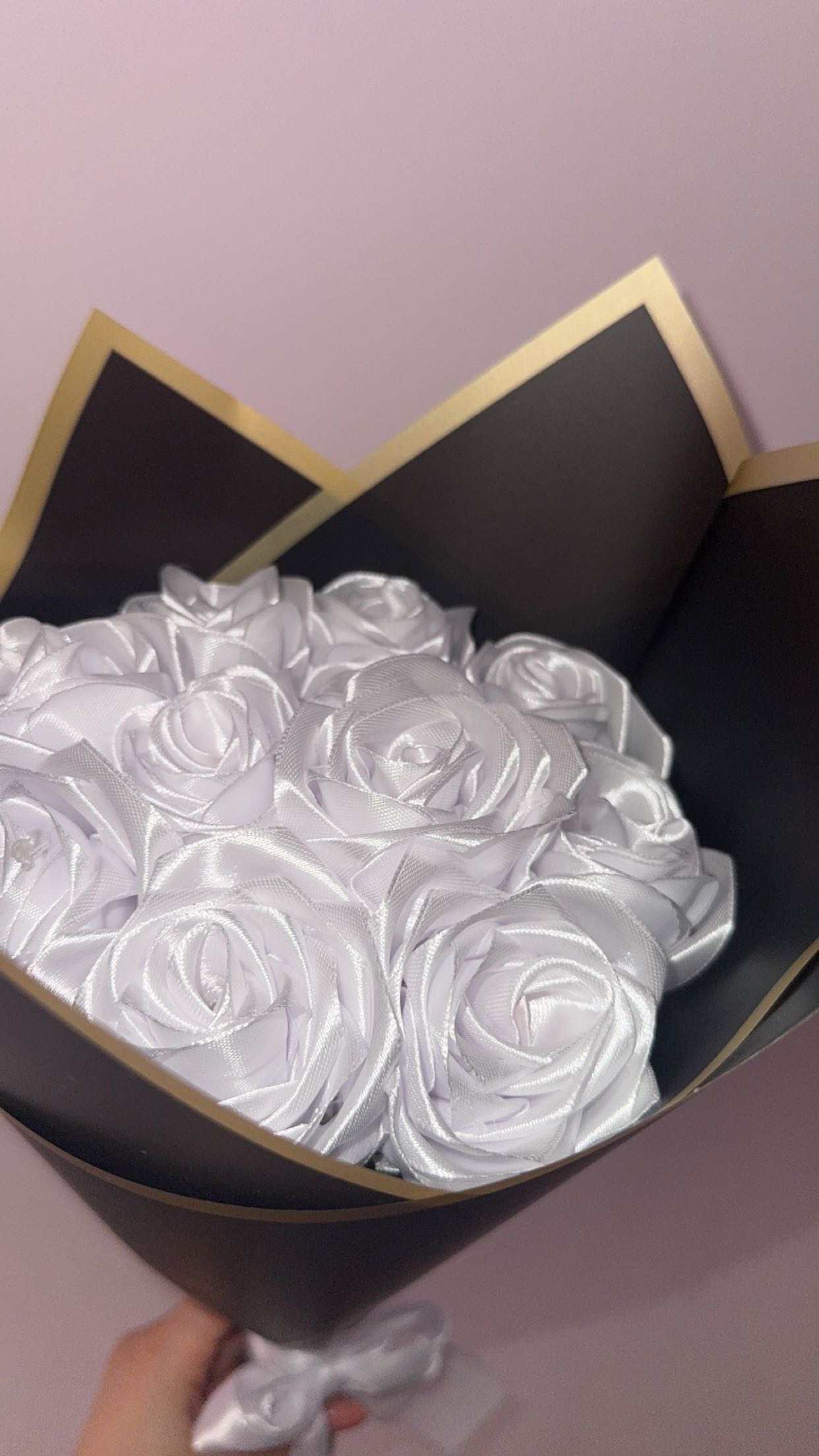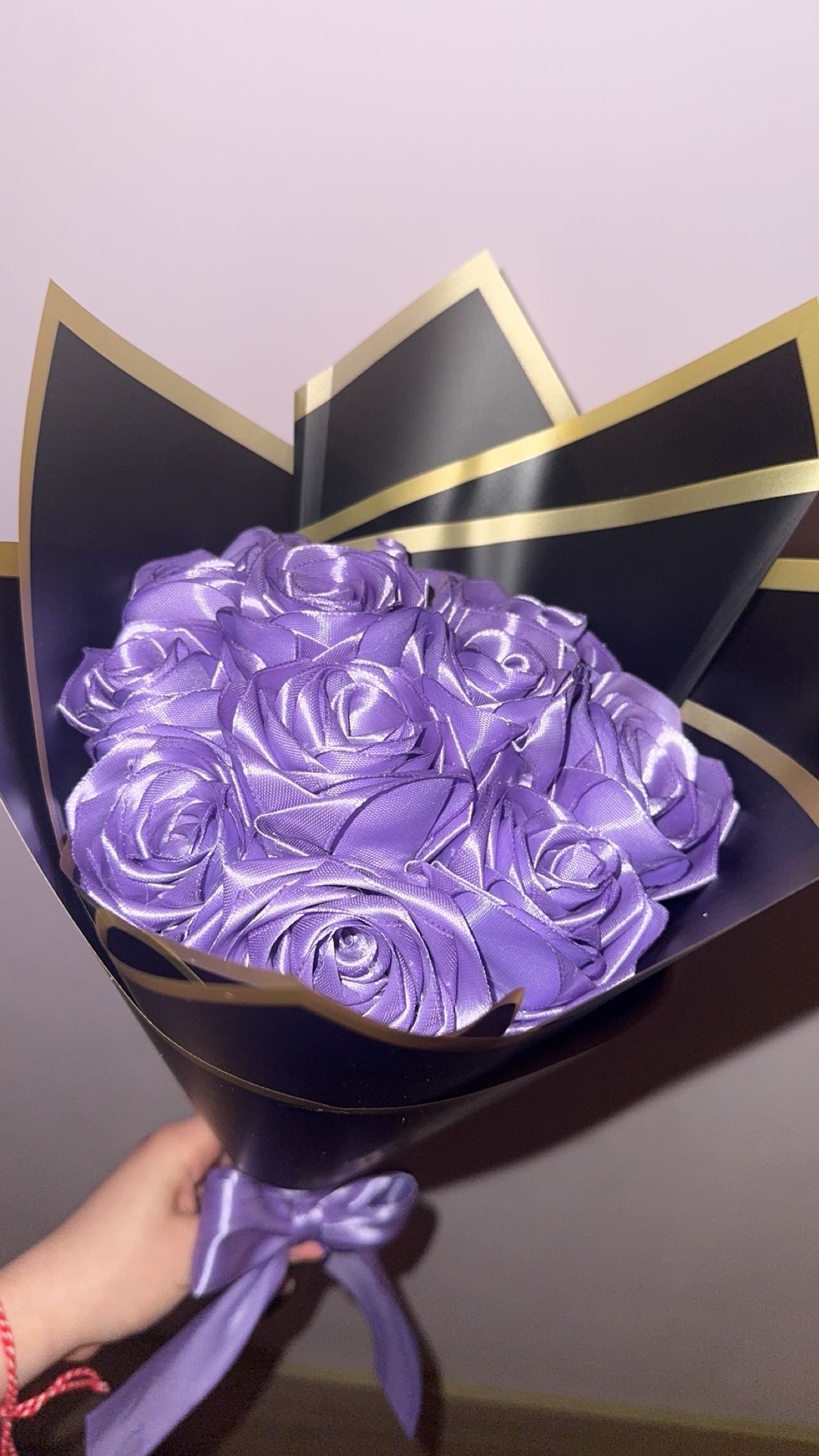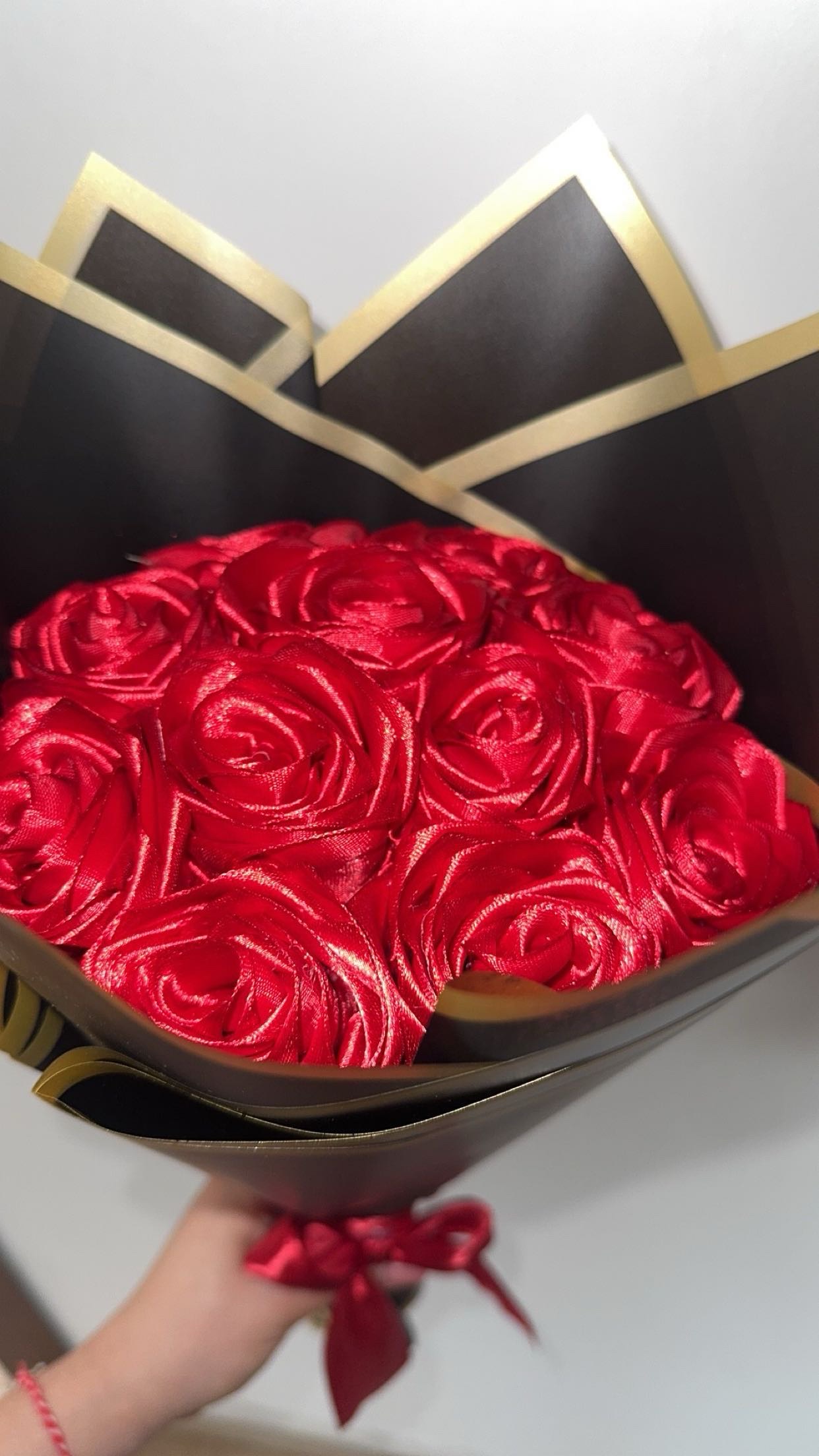 Всеки букет се изработва ръчно с внимание към детайла. Използваме висококачествен сатен, оформен в елегантни рози, които не увяхват с времето. Това го прави перфектна алтернатива на традиционните цветя – подарък, който ще остане завинаги.