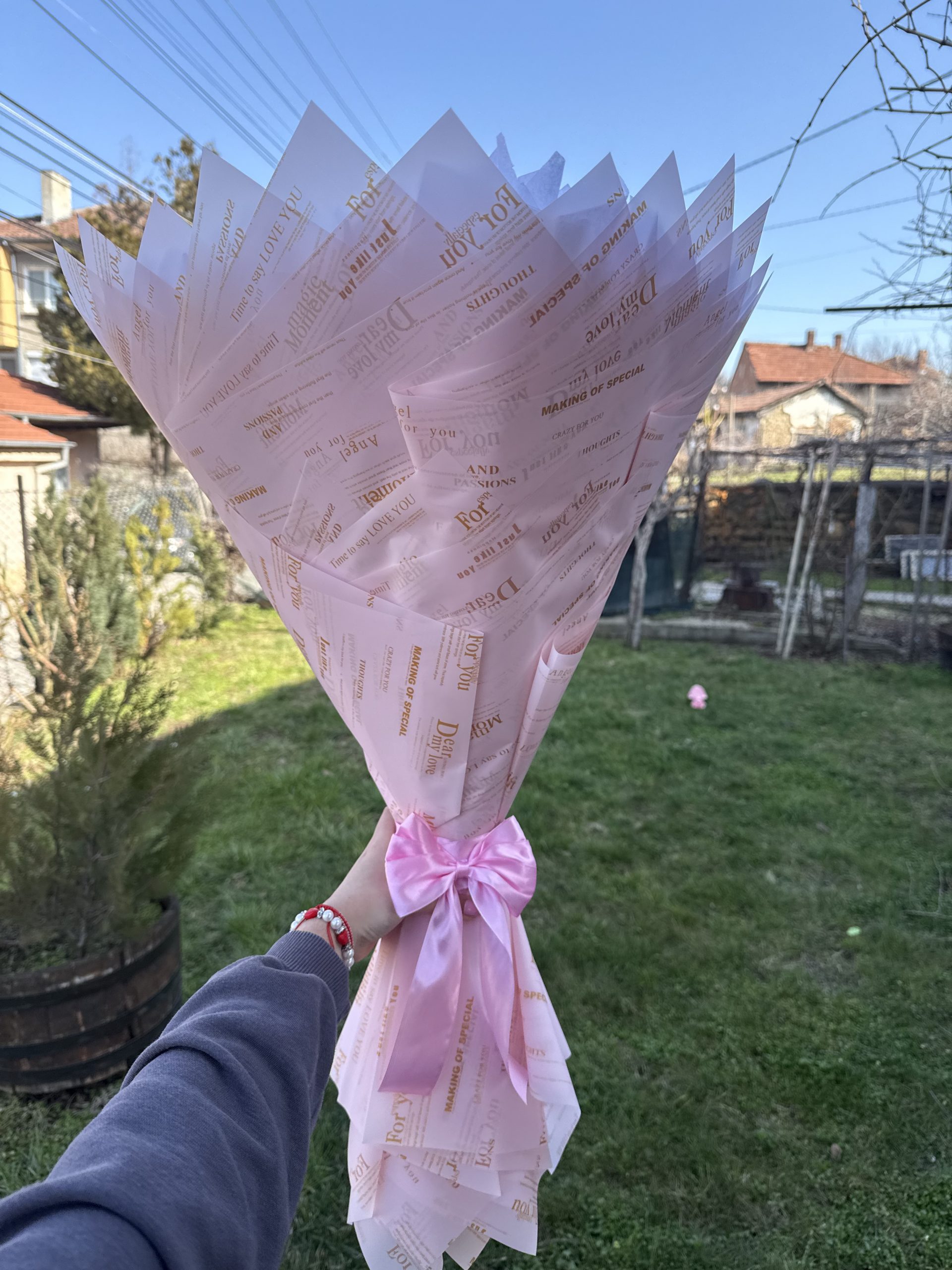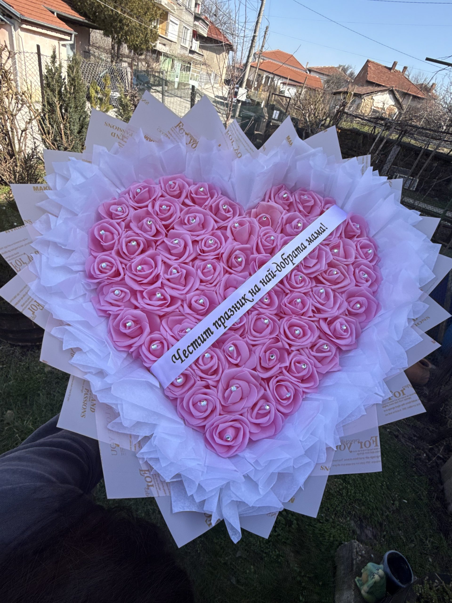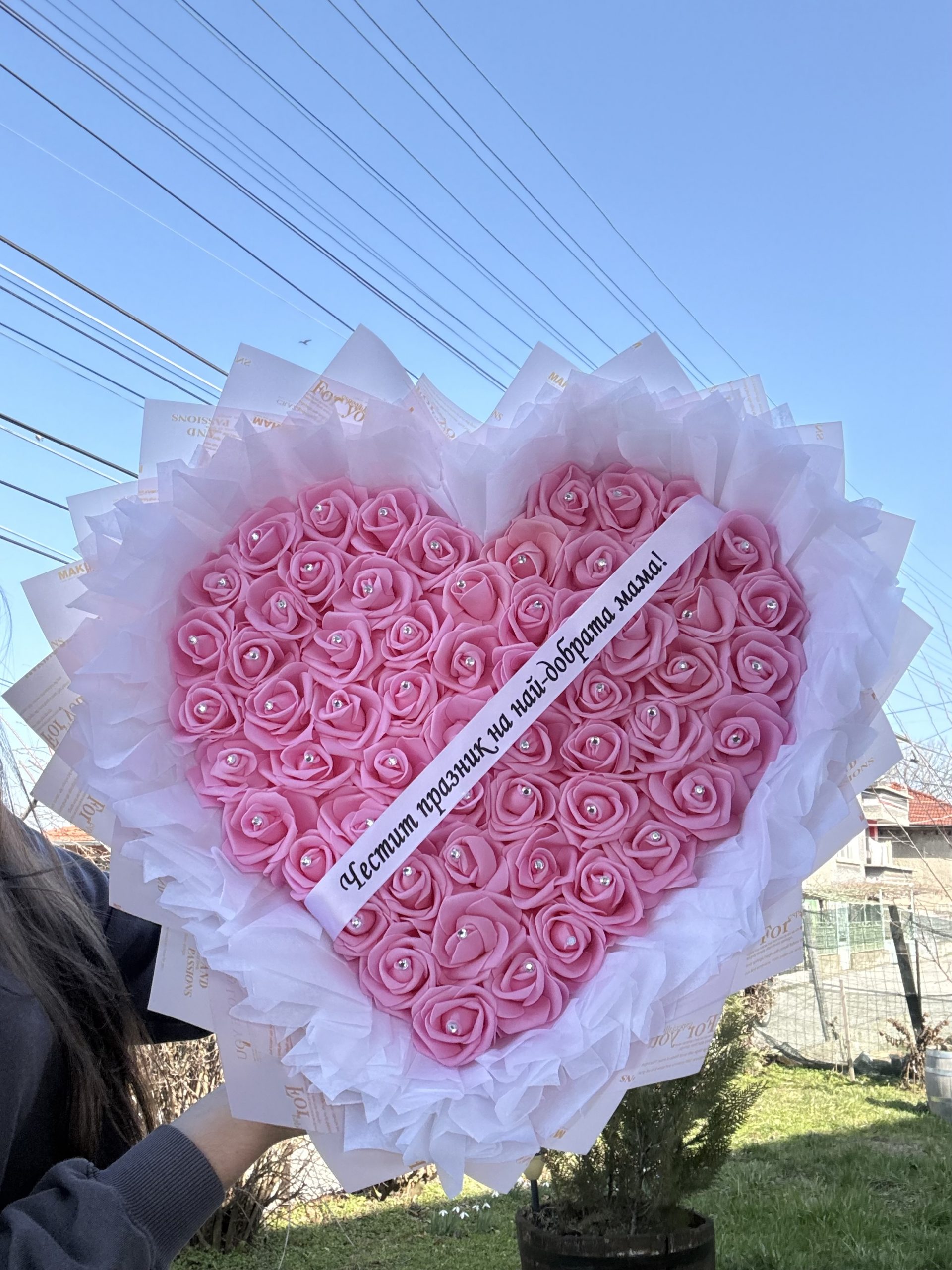 💝 Букетът е оформен във формата на сърце и е допълнен с красива опаковка, която го прави още по-впечатляващ.
