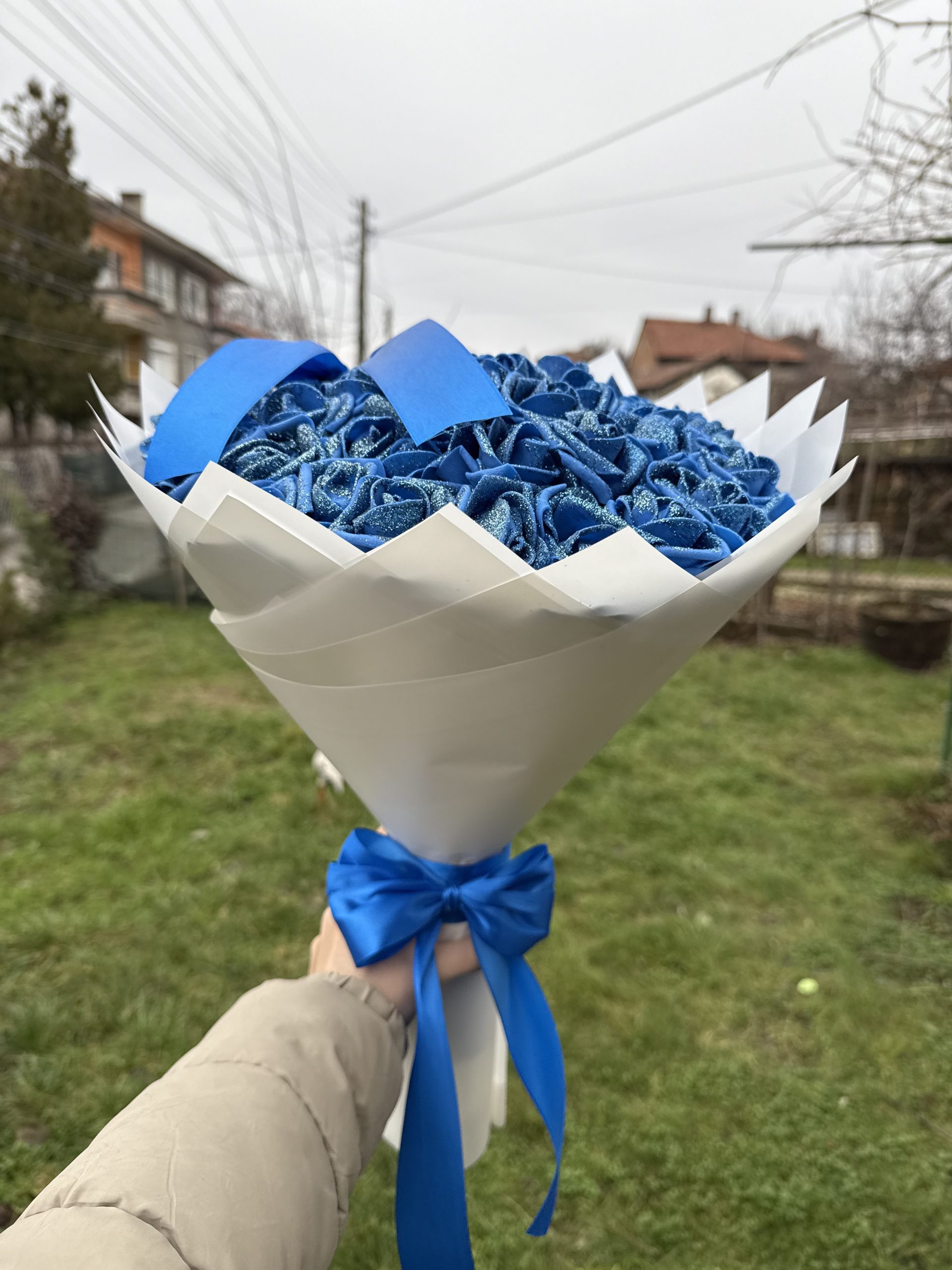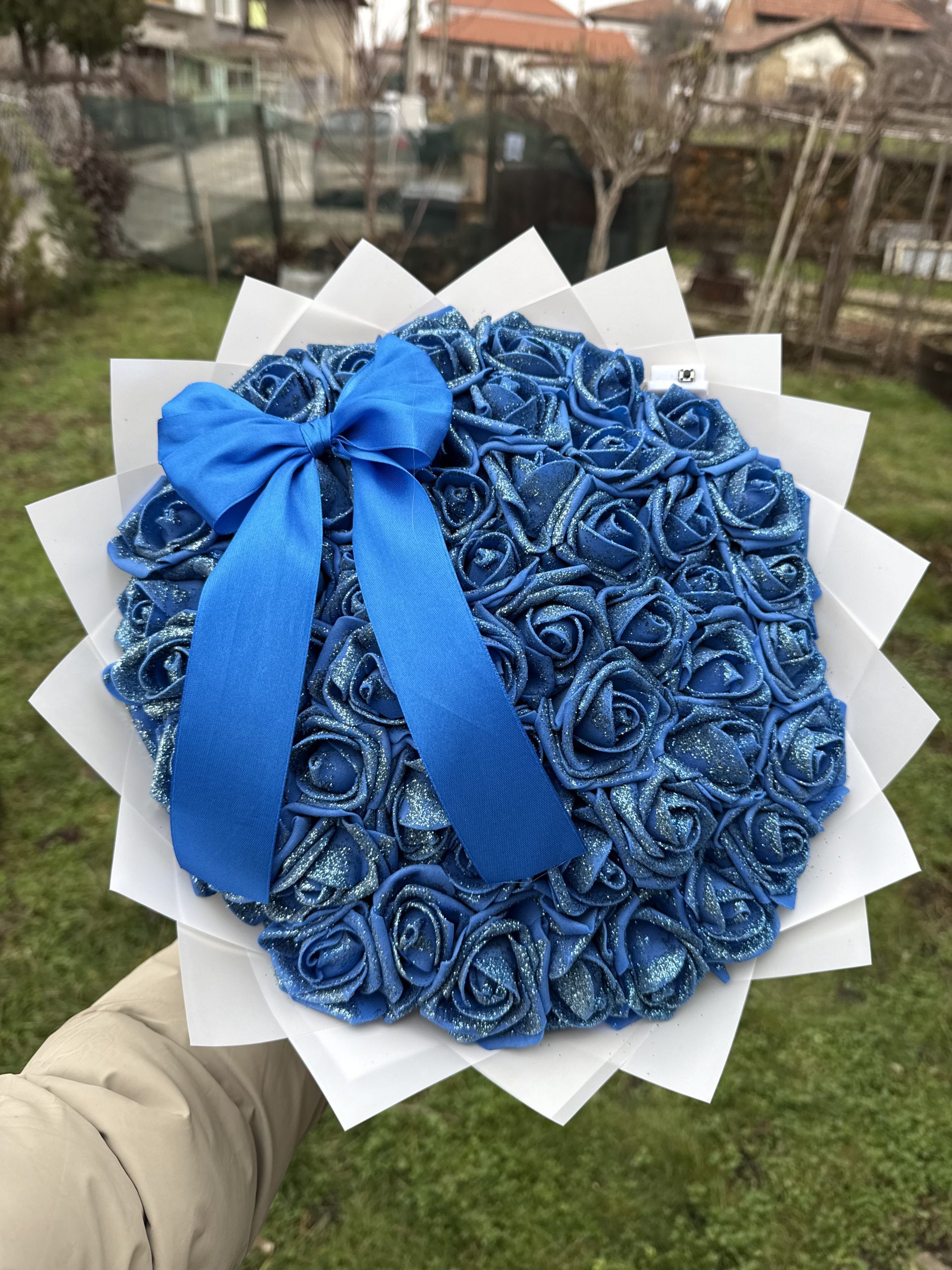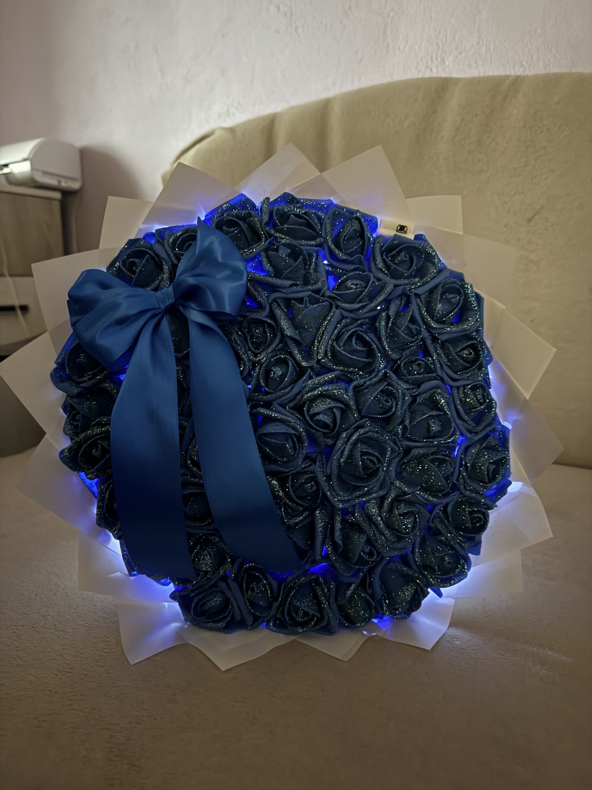 Светещ букет с 51 фоамови рози и брокат
